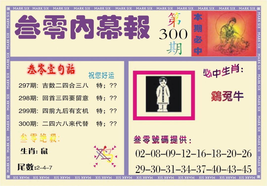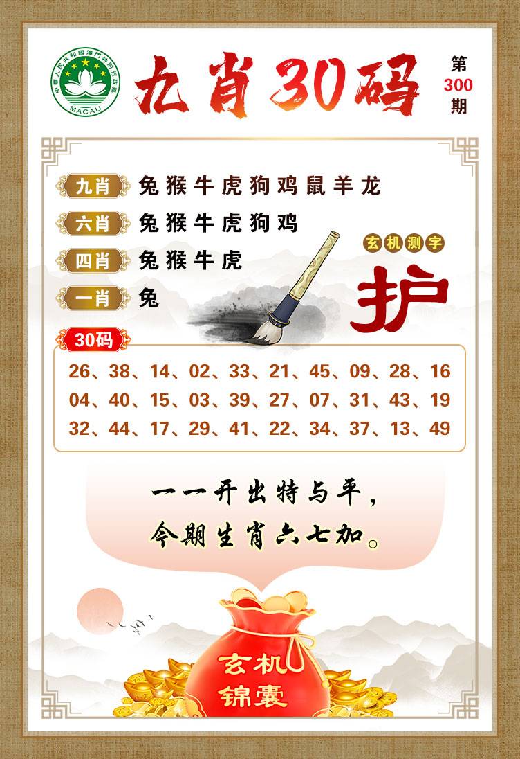 300期:规律四肖 【牛猴兔马】开:?00 |