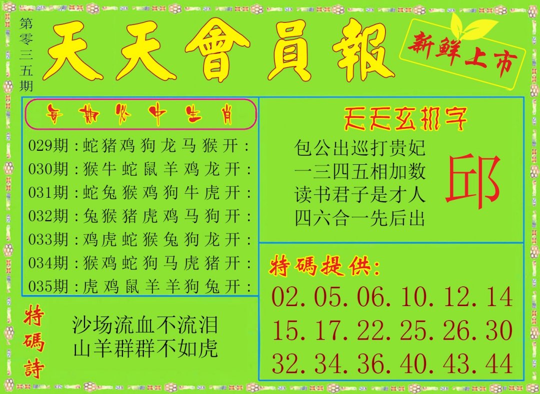 035期:规律四肖 【龙蛇羊马】开:?00 |